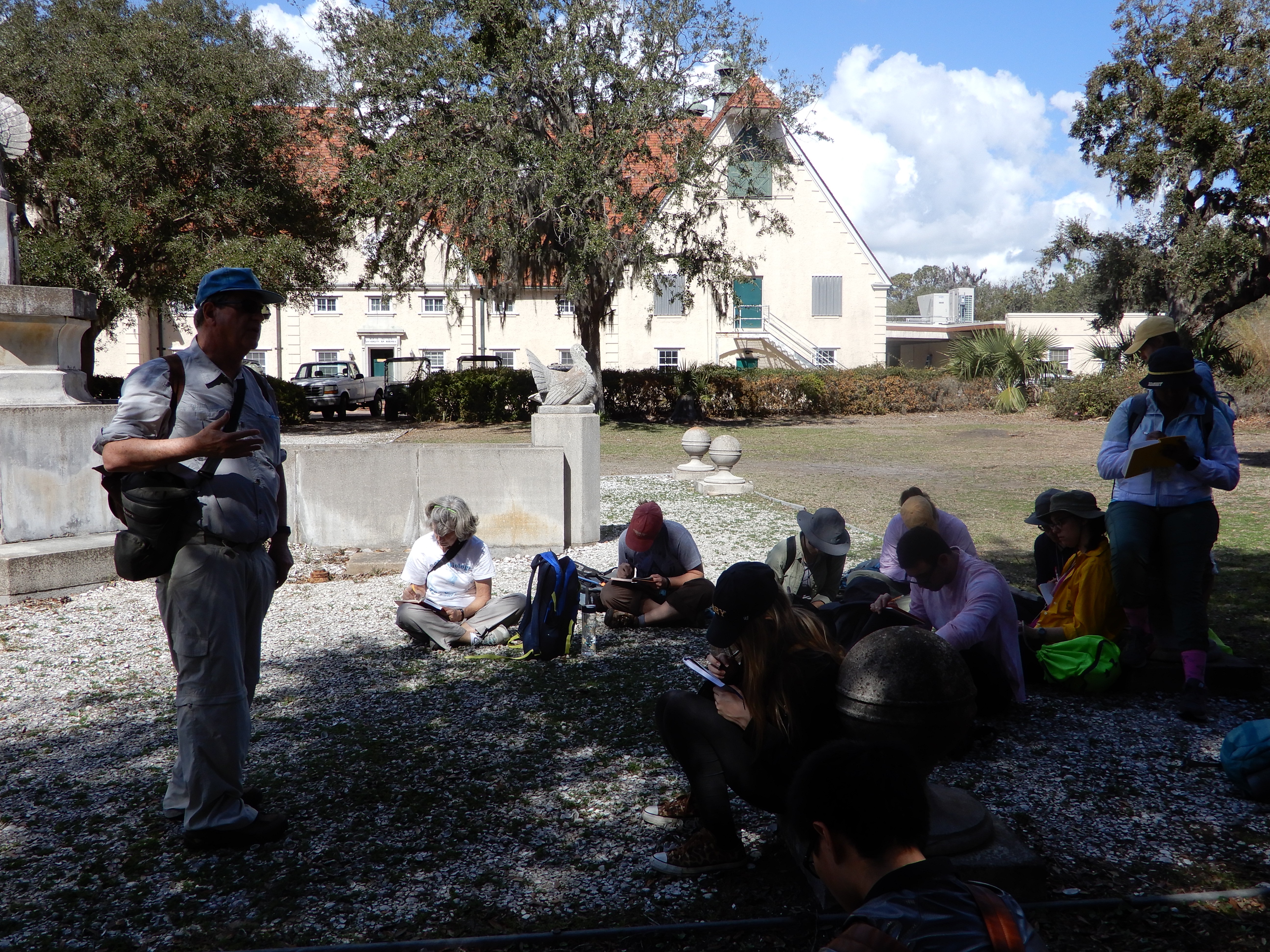 Since 1997, Professor Tony Martin of the Department of Environmental Sciences has upheld a biannual tradition by leading a weekend field trip to Sapelo Island on the Georgia coast, with the weekend of February 23-25 as the latest version. This field trip is a required “shake-down cruise” for the students before they go to San Salvador Island (Bahamas) for the Modern and Ancient Tropical Environments Field Course. This time, though, was really special for the large number of faculty and other educators who came along, adding value to everyone’s educational experience.
