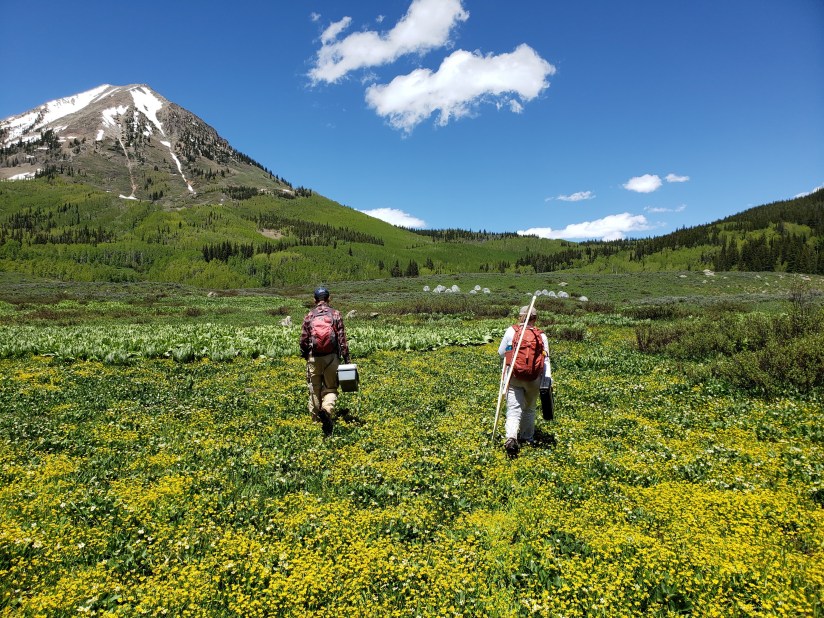 This summer, I conducted research at the Rocky Mountain Biological Laboratory (RMBL) in Gothic, Colorado with the Brosi Lab. Every morning we convened in the lab to gather our supplies, including bug nets, glass vials, colored beads, and a soil moisture probe. Because I helped with the pollen limitation experiment and mostly worked with plants, my day was comprised of tagging individuals of our focal species, hand pollinating individuals selected for pollen supplementation, collecting any individuals with expanded ovules, measuring soil moisture, and tracking the phenology of species in a designated area. After visiting two or three sites, we returned to the lab to sort the seeds and enter data. We occasionally encountered problems, such as getting our car stuck in a snowbank and losing tagged individuals to grazing cows, but the experiment ran smoothly, and we collected valuable data.
