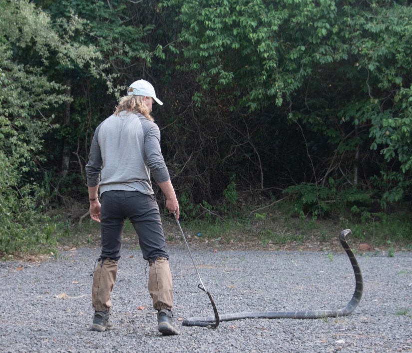 Eric working with the king cobras on the reserve