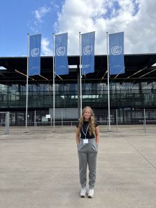 It’s hard to know where to start when profiling a student like Kylie Hanson. A student-athlete on the Emory track team, a double major, a researcher in the Saikawa Lab, and a student with an abiding interest in the intersection of climate science and policy, Kylie really does it all! Earlier this summer, Kylie attended the SB60 conference in Bonn, Germany as part of Emory Climate Talks, this was right after winning first prize in the undergraduate poster conference at the Air & Waste Management Association Annual Meeting. Kylie has charted her own unique path at Emory and so we asked her to share her journey and what she hopes to do as she begins her final year at Emory.