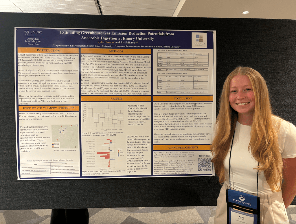 During my final year at Emory, I hope to expand my research on anaerobic digestion and turn it into my honors thesis. We hope to publish this research in a journal as well. I hope this research makes an impact on mitigating emissions from food waste on our campus. After Emory, I want to pursue law school to eventually work in environmental law.